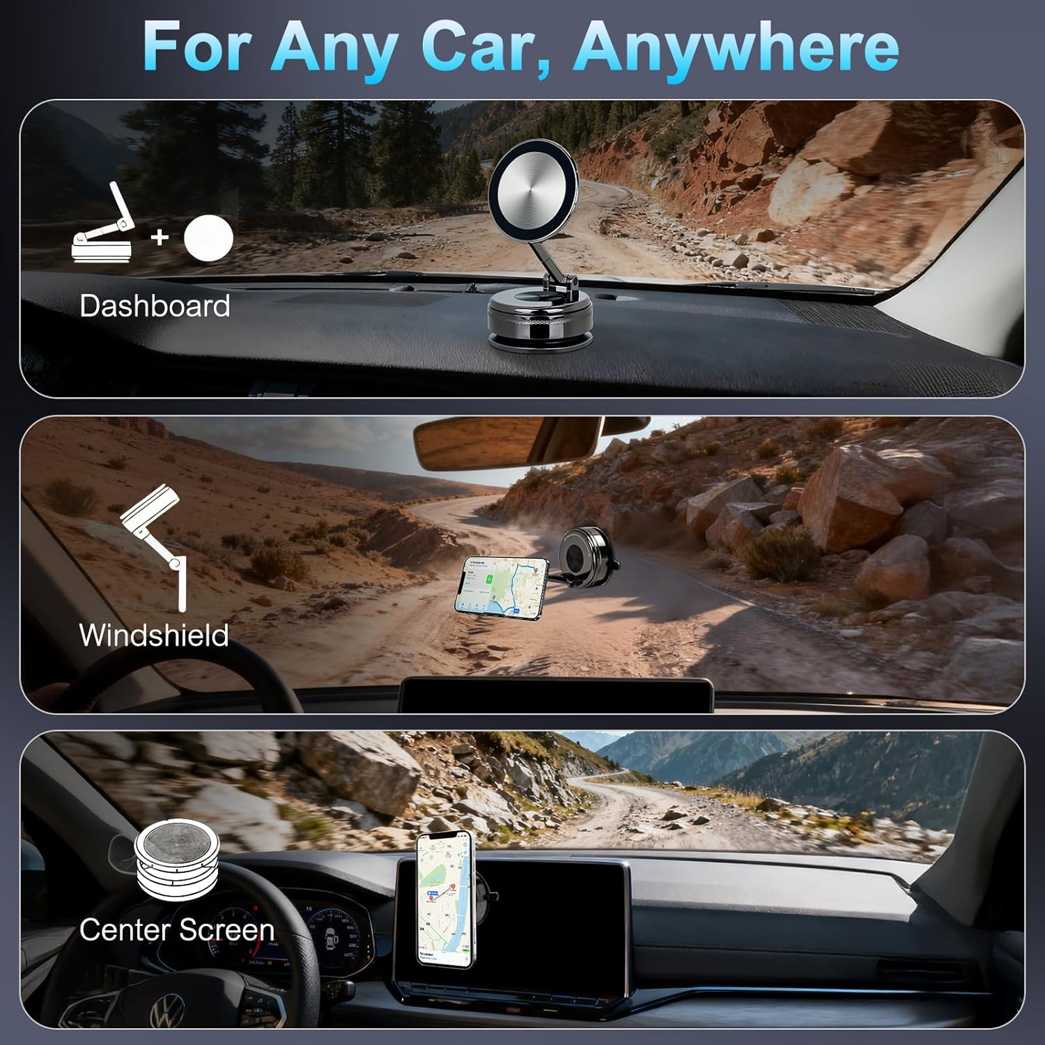 • Powerful Magnetic Hold – Equipped with 20 high-strength magnets delivering a shake-proof grip, compatible with most phone cases without affecting GPS or wireless charging.